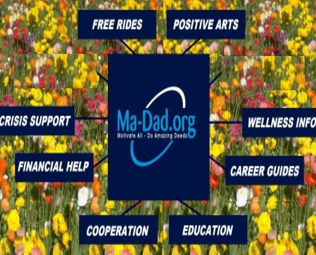 Ma-Dad Foundation Mission Statement: To assist humanity through various helpful activities which may include providing education, products, services, financial assistance and helpful information to better everyone’s lives in spirit of sharing, caring and promoting peace and giving others opportunity to participate in a great cause.